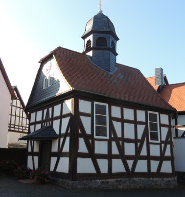 Die Kirche ist ein typisch hessischer Fachwerkbau. Die Empore ist mit Malereien der zwölf Apostel und anderen Motiven geschmückt. Die Apostel sind nicht als perfekte Heilige dargestellt, sondern als Menschen mit kleinen Fehlern und viel Humor. So zeigen sie, dass die Kirche aus ganz normalen Menschen besteht, die gemeinsam ihren Glauben leben – und dabei auch mal lachen können.